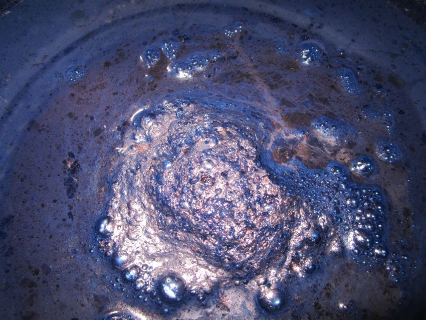 Die Fructose-Indigoküpe, die ich verwende ist umweltfreundlich, weil sie kein amphibien- und reptilienschädigendes Hydrosulfit enthält, sondern tatsächliche Fructose (Fruchtzucker).